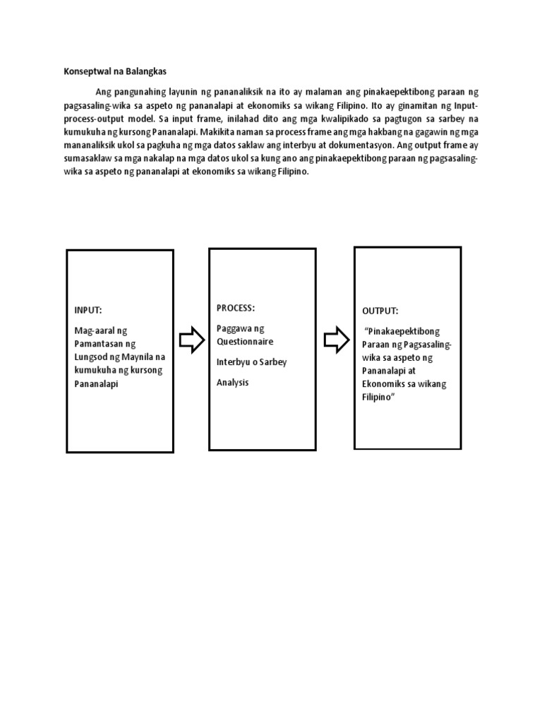 Naglalayong suriin ang kabuluhan at. Kulturang pilipino input proseso awtput unang paglalarawan. Batayang konseptwalteoretikal Ipinaliwanag ni Kerlinger 1973 na ang teoretikal o konseptwal na balangkas na kailangan sa isang sulating pananaliksik ay tumutukoy set ng.